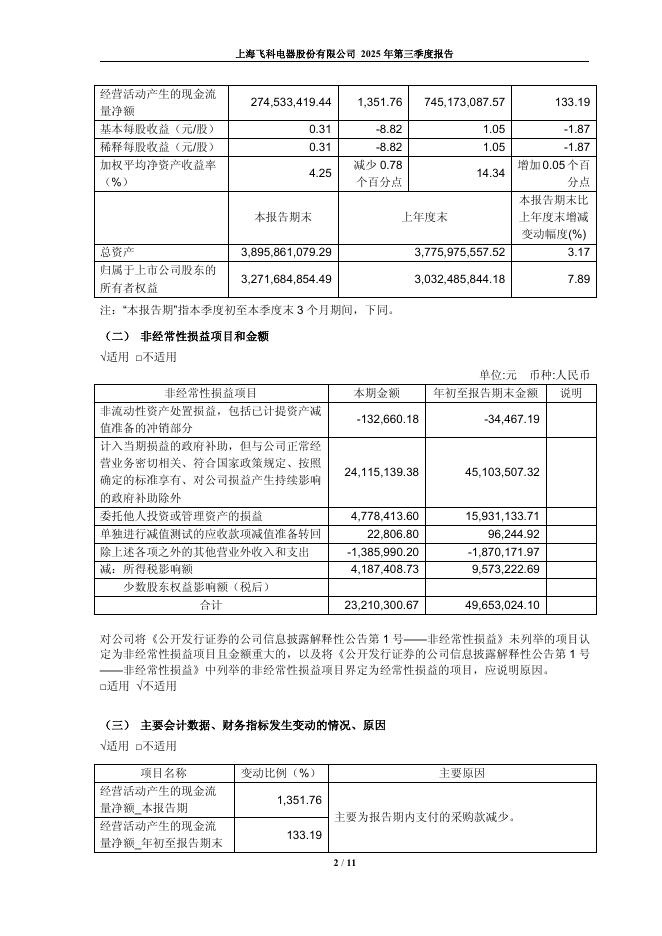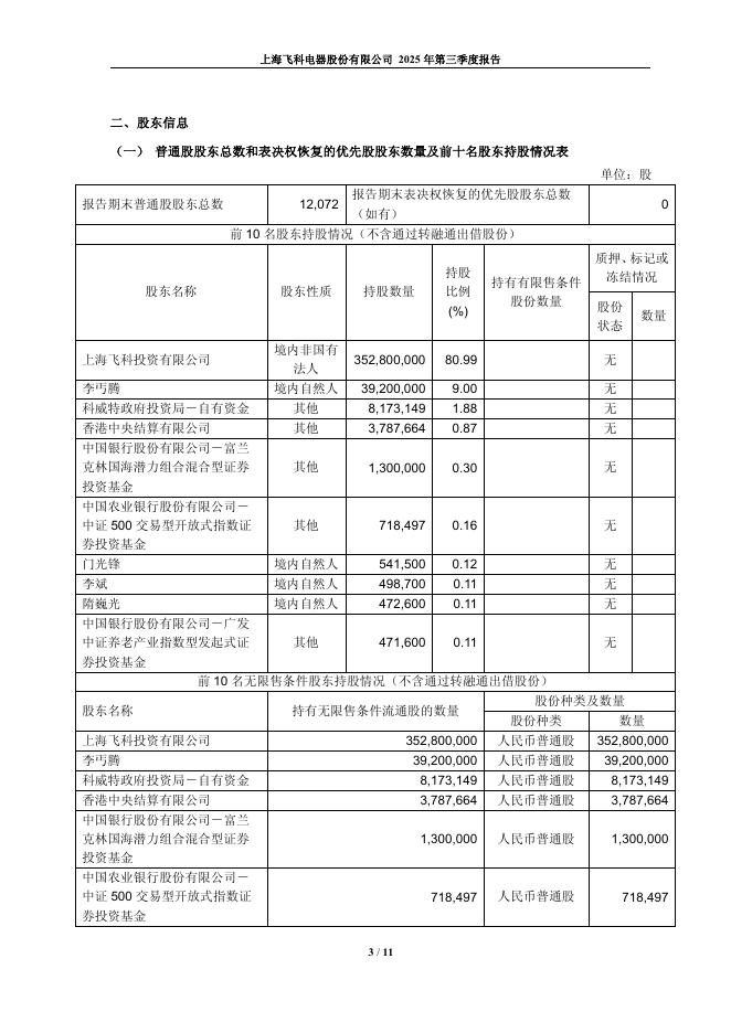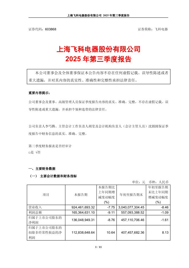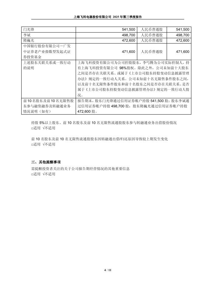 603868-飞科电器:上海飞科电器股份有限公司2025年第三季度报告.pdf