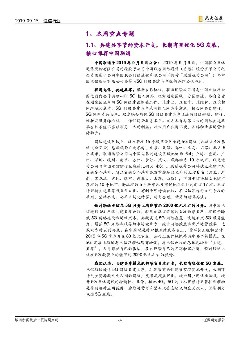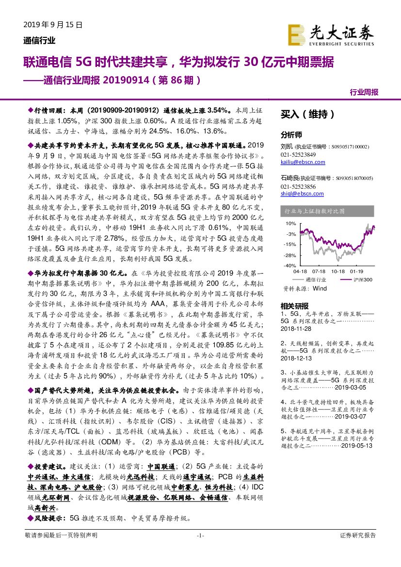光大证券:通信行业周报(第86期):联通电信5G时代共建共享,华为拟发行30亿元中期票据.pdf