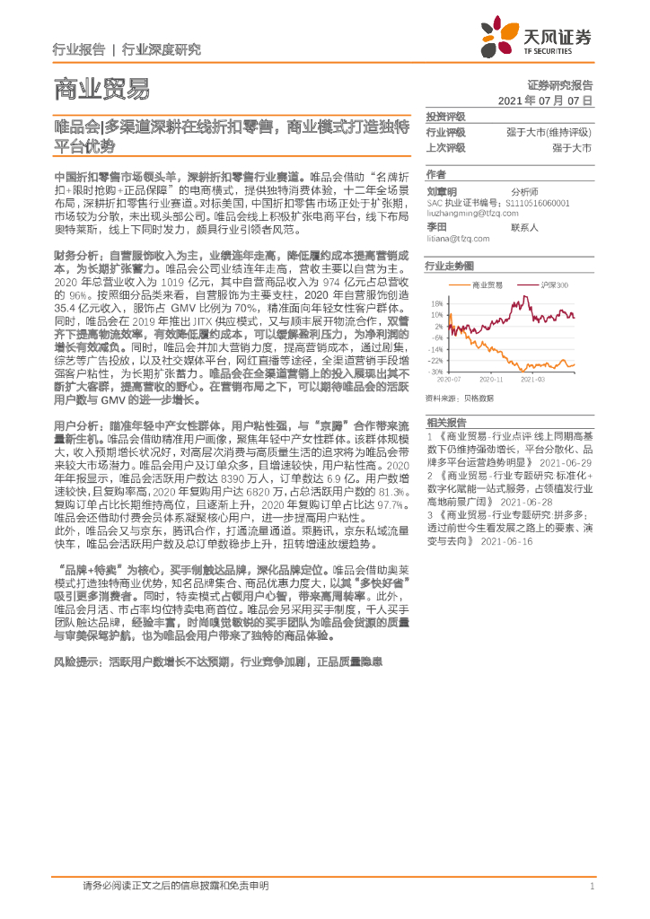 天风证券:商业贸易:唯品会-多渠道深耕在线折扣零售,商业模式打造独特平台优势.pdf