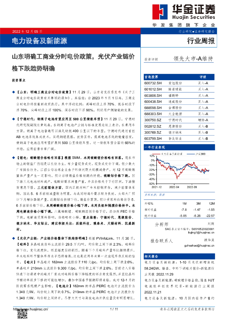 华金证券:电力设备及新能源行业周报:山东明确工商业分时电价政策,光伏产业链价格下跌趋势明确.pdf
