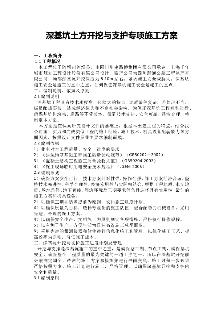 省道改扩建工程深基坑开挖与支护施工方案.doc