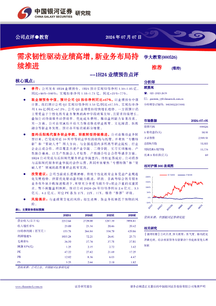 中国银河:学大教育(000526)-1H24业绩预告点评:需求韧性驱动业绩高增,新业务布局持续推进.pdf