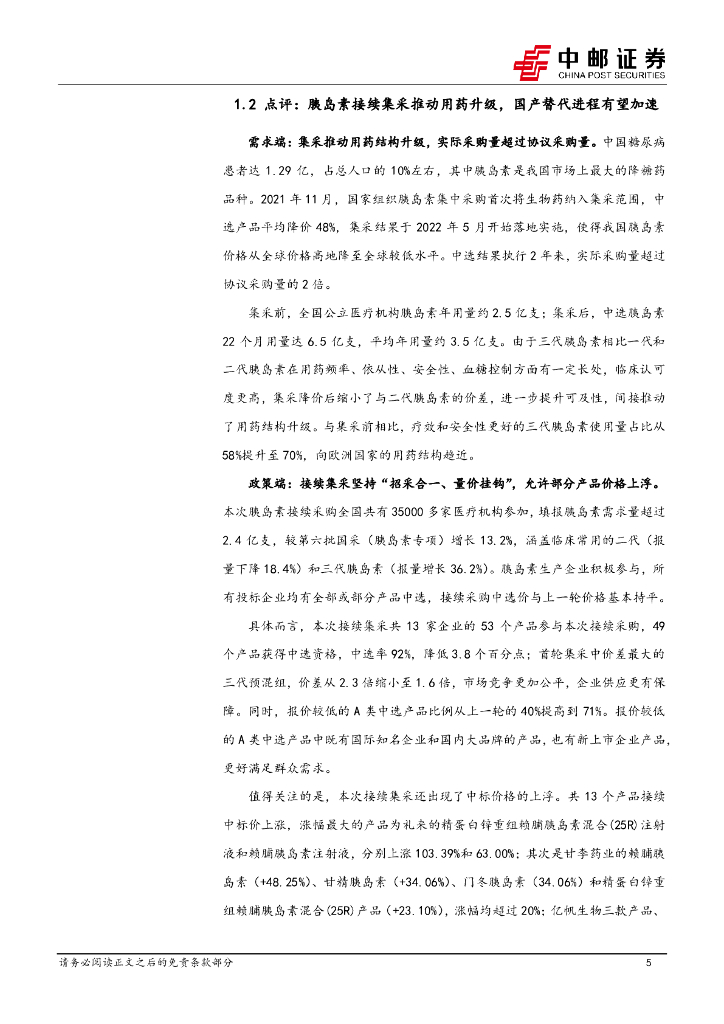 中邮证券:医药生物行业周报:医药生物行业报告医药板块反弹趋势显著,胰岛素接续集采有望加速国产替代进程.pdf