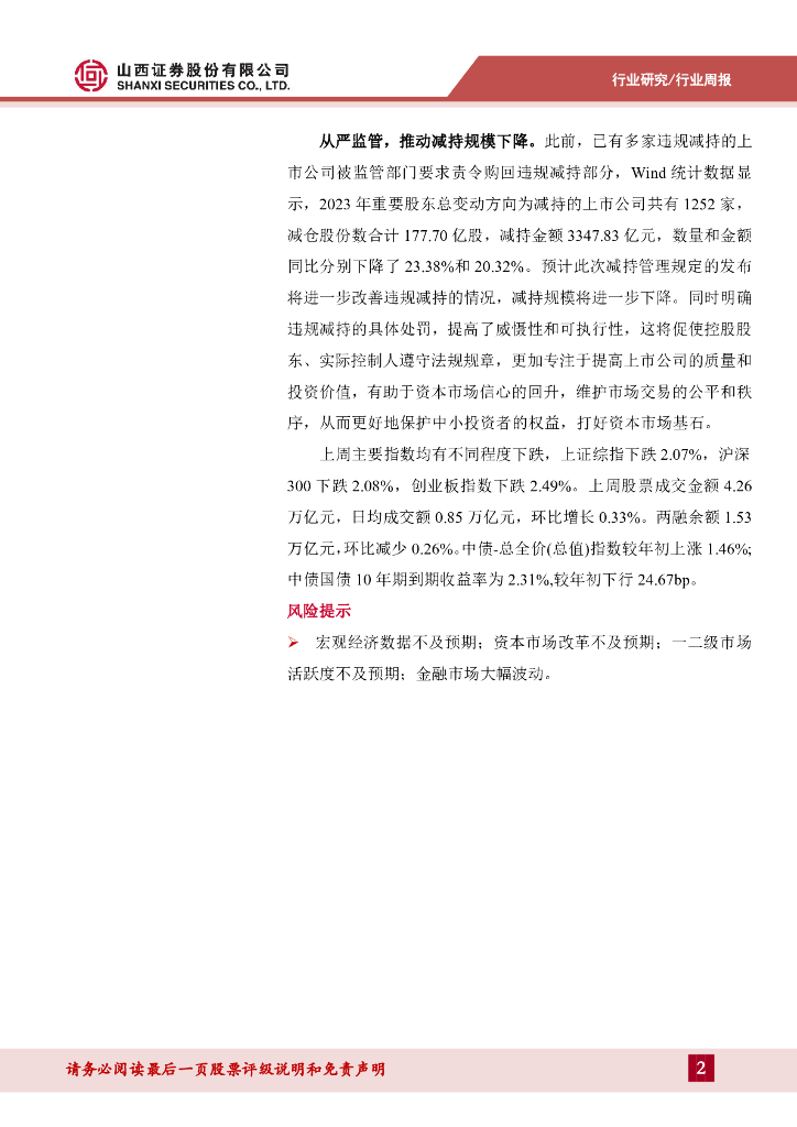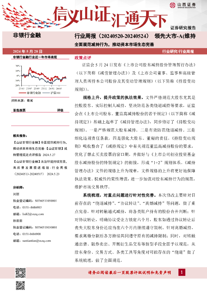 山西证券:非银行金融行业周报:全面规范减持行为,推动资本市场生态完善.pdf
