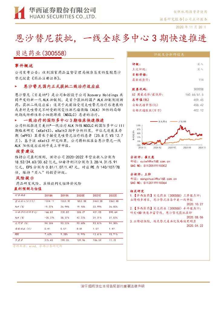 华西证券:贝达药业(300558)-恩沙替尼获批,一线全球多中心3期快速推进.pdf