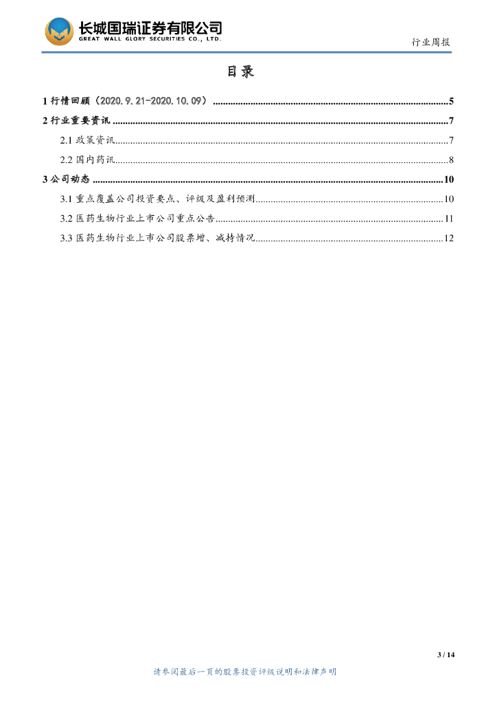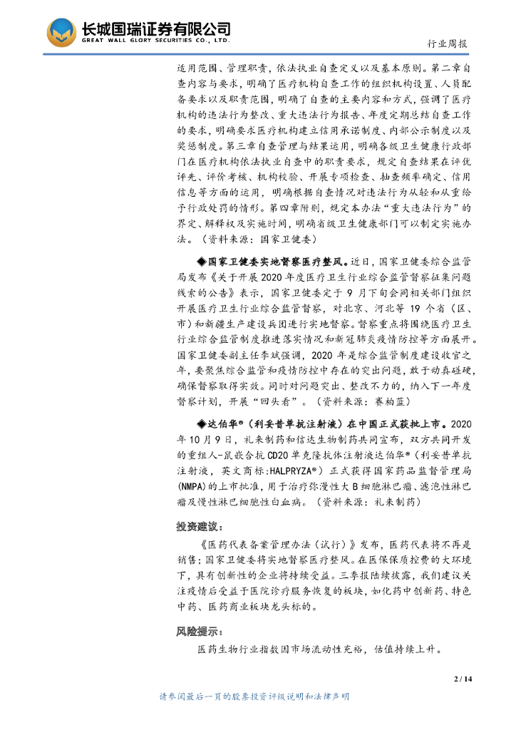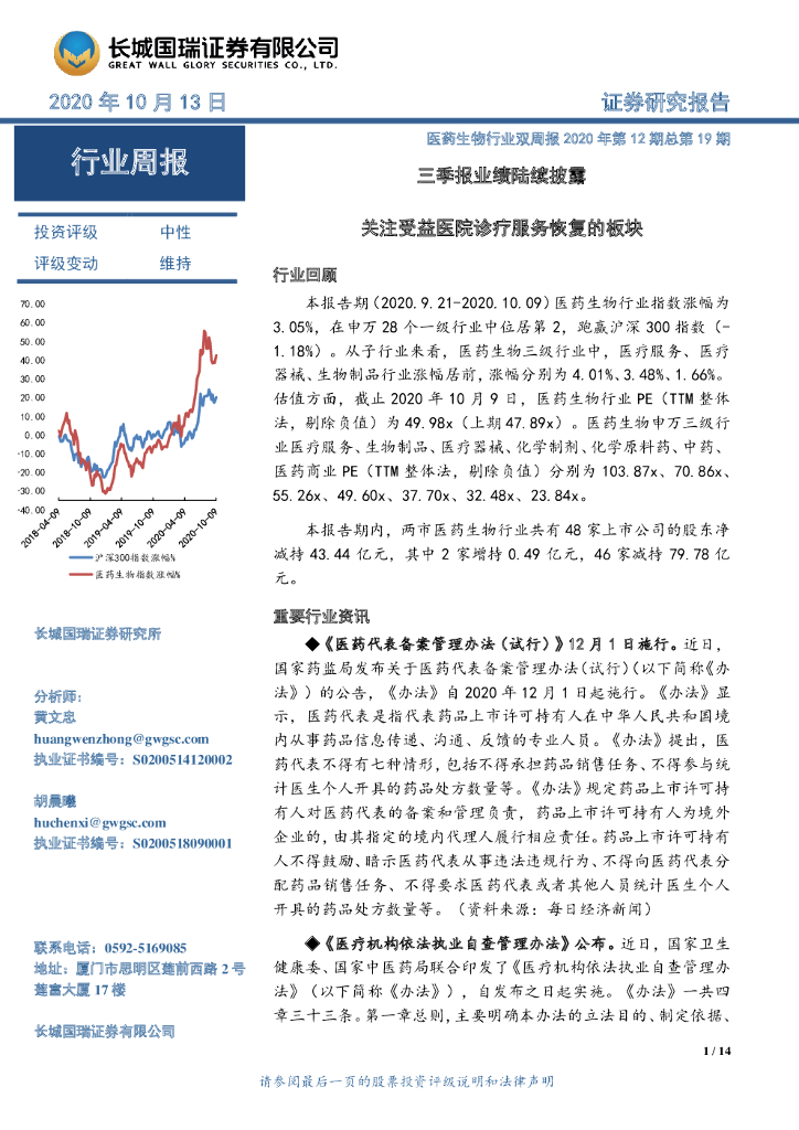 长城国瑞证券:医药生物行业双周报2020年第12期总第19期:三季报业绩陆续披露 关注受益医院诊疗服务恢复的板块.pdf