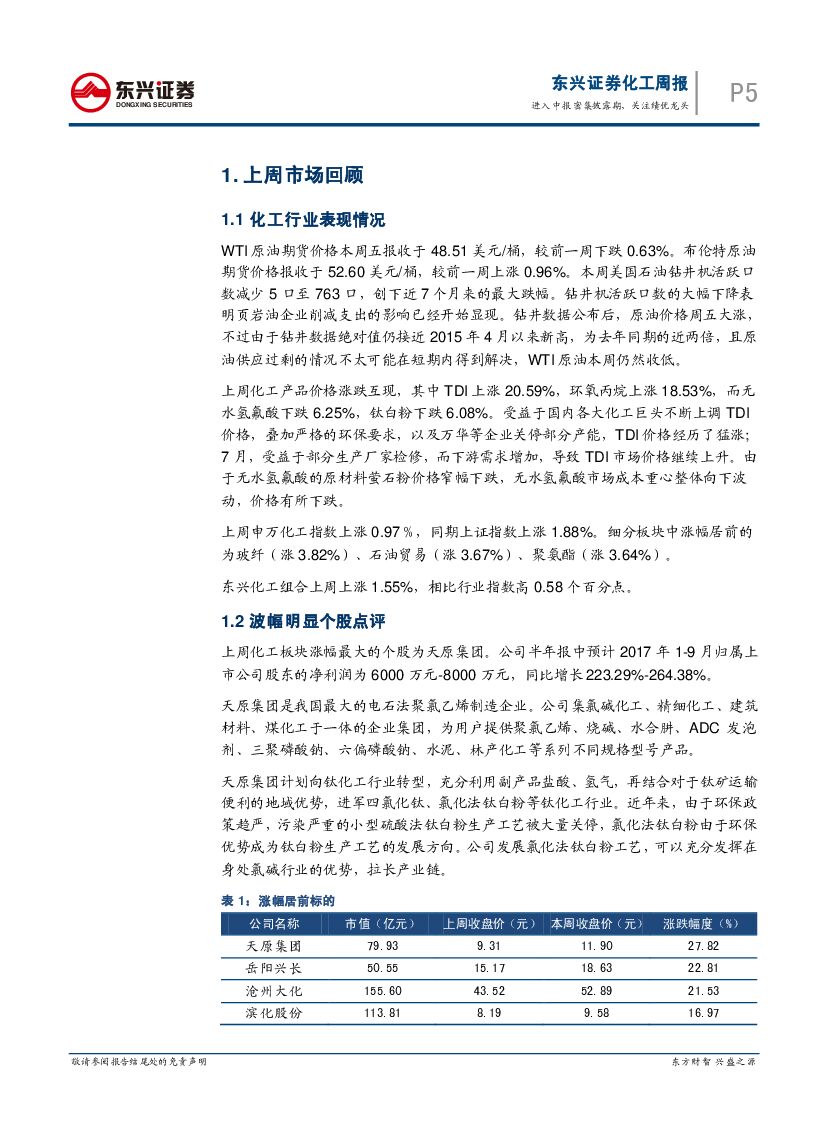 东兴证券:基础化工2017年8月份第3期周报:进入业绩密集披露期,关注绩优龙头.pdf