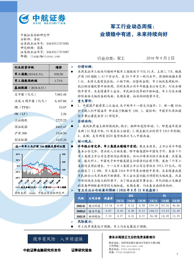中航证券:军工行业动态周报:业绩稳中有进,未来持续向好.pdf