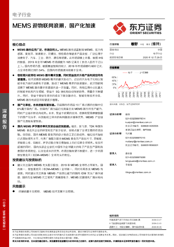 东方证券:电子行业:MEMS迎物联网浪潮,国产化加速.pdf