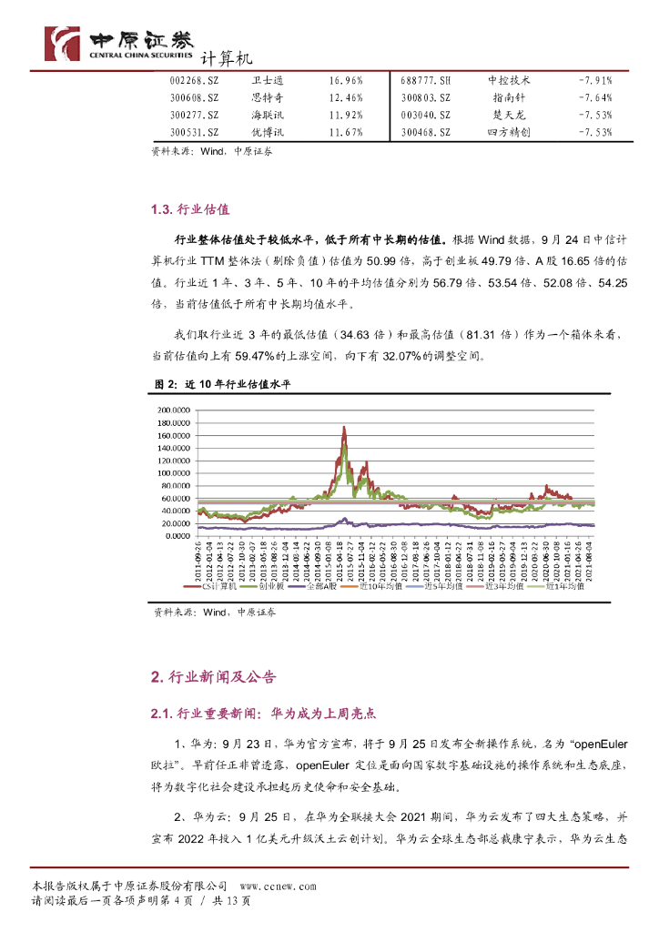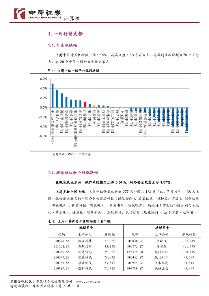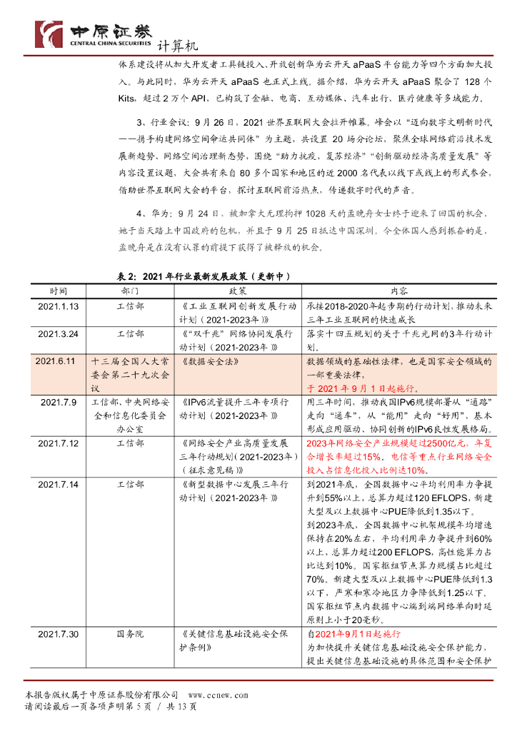 中原证券:计算机行业周报:积极关注华为的硬件对手和软件合作伙伴.pdf