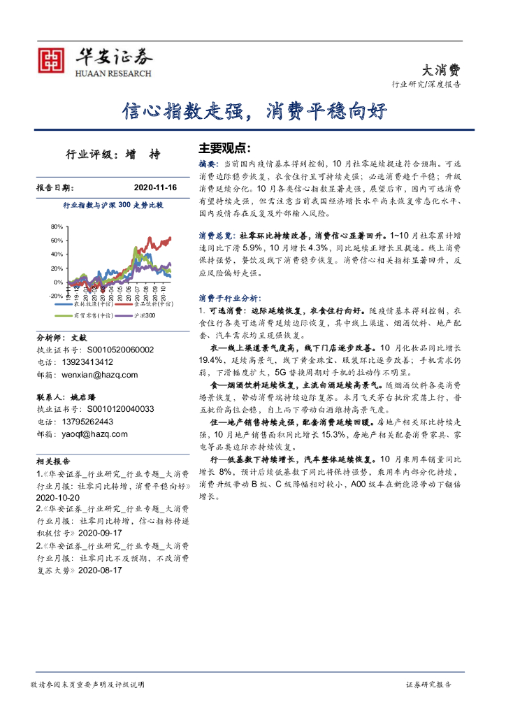华安证券:大消费:信心指数走强,消费平稳向好.pdf
