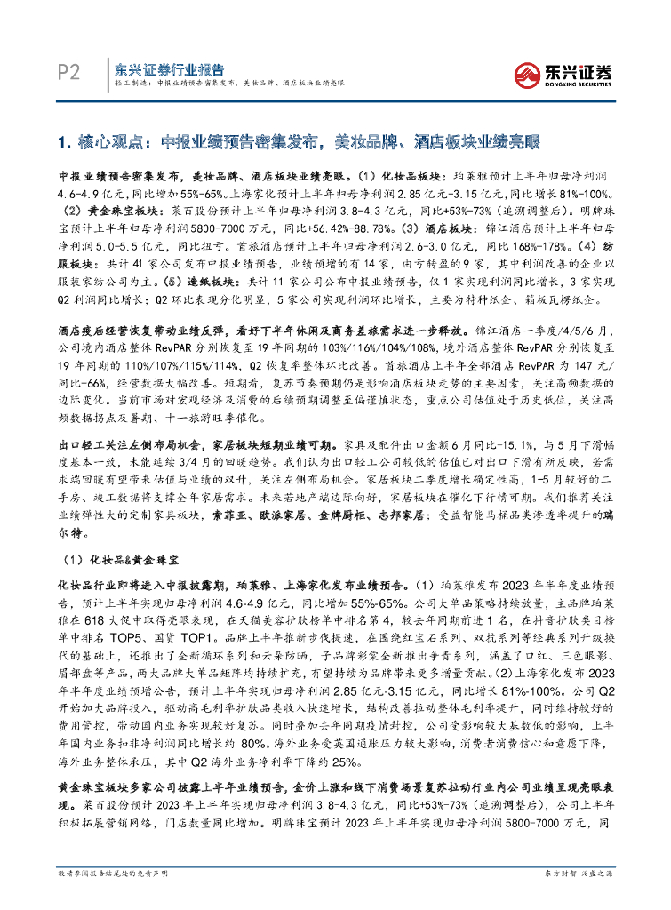 东兴证券:东兴轻纺&商社周观点:中报业绩预告密集发布,美妆品牌、酒店板块业绩亮眼.pdf