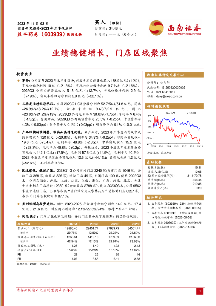 西南证券:益丰药房(603939)-业绩稳健增长,门店区域聚焦.pdf