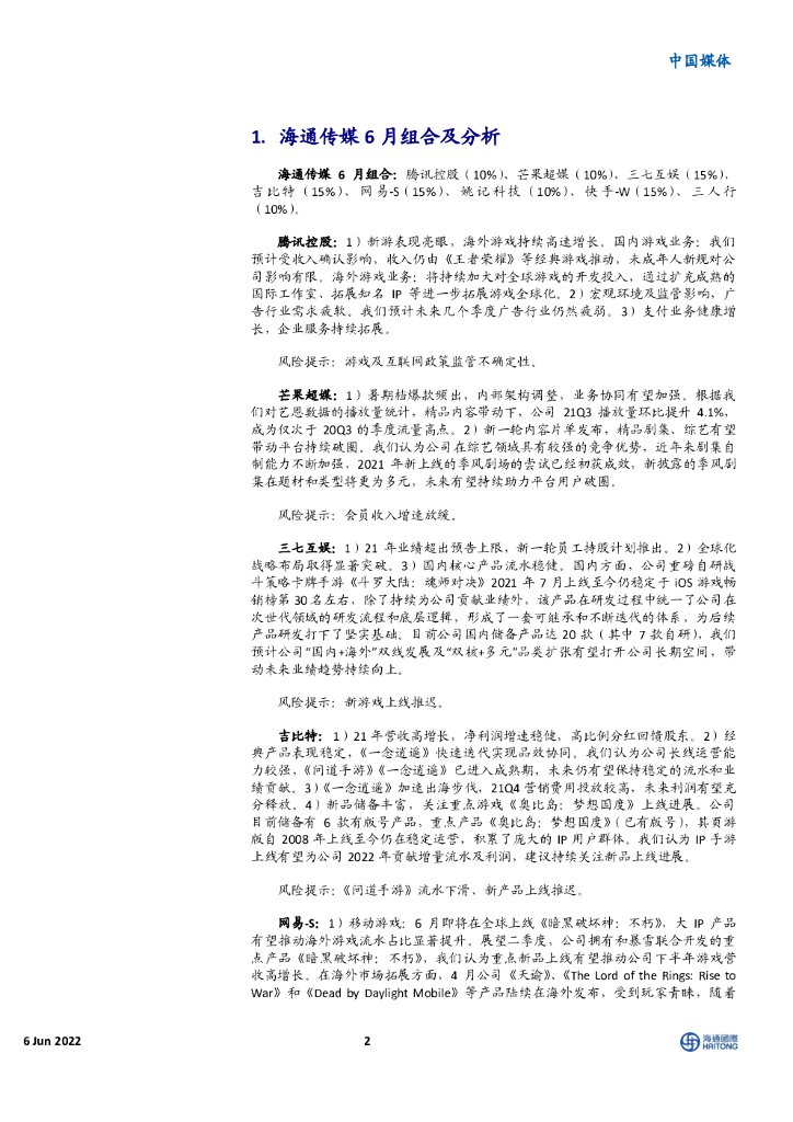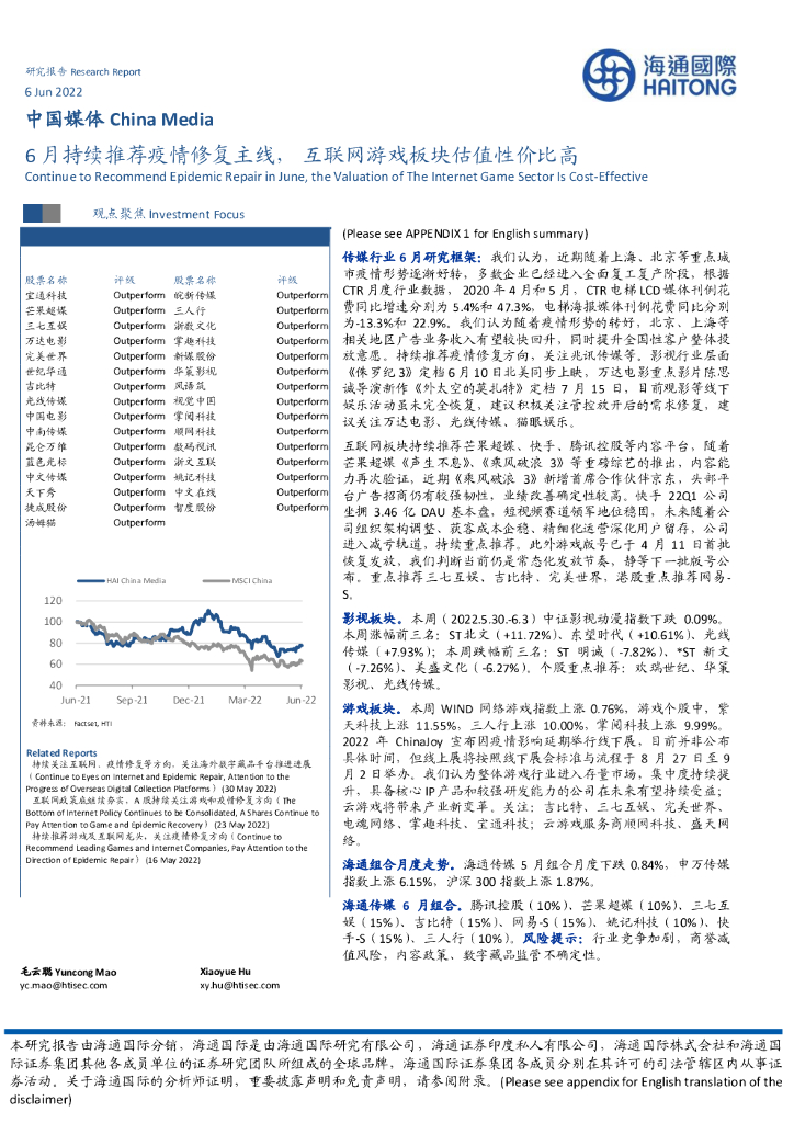 海通国际:中国媒体:6月持续推荐疫情修复主线,互联网游戏板块估值性价比高.pdf