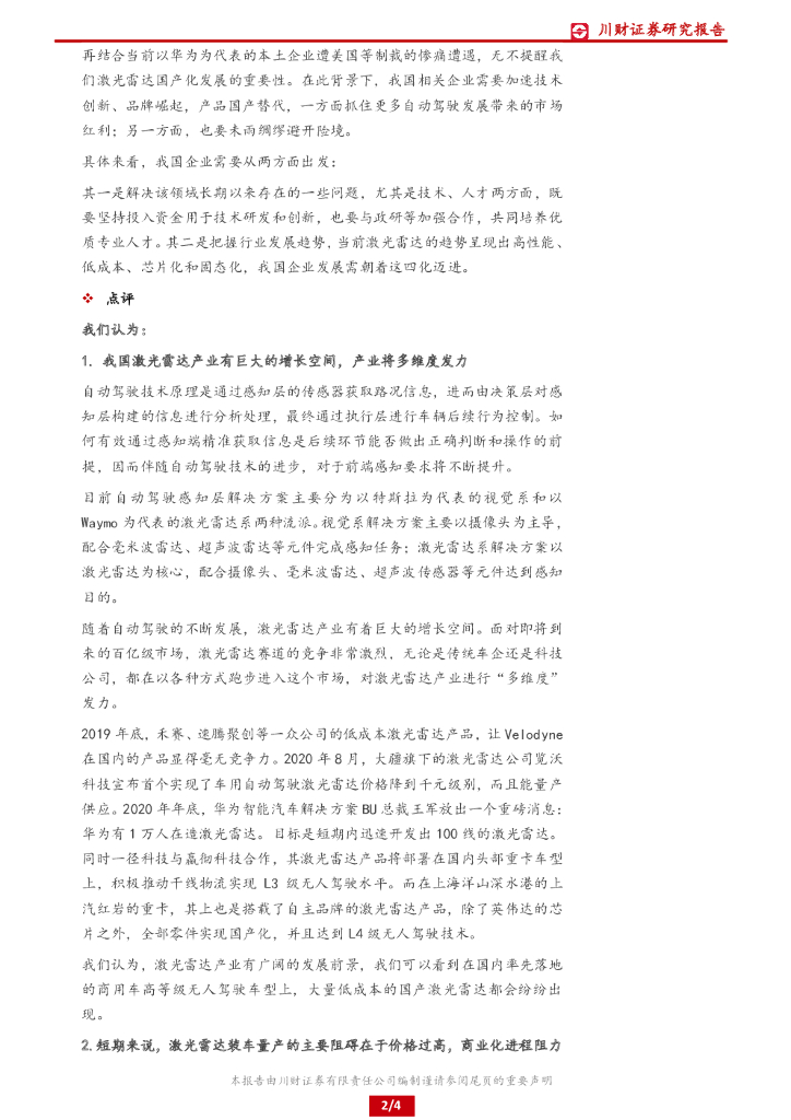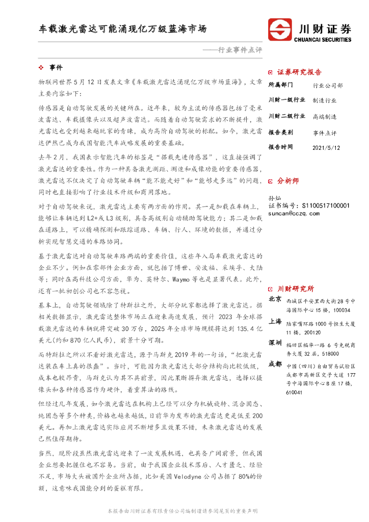 川财证券:高端制造行业事件点评:车载激光雷达可能涌现亿万级蓝海市场.pdf