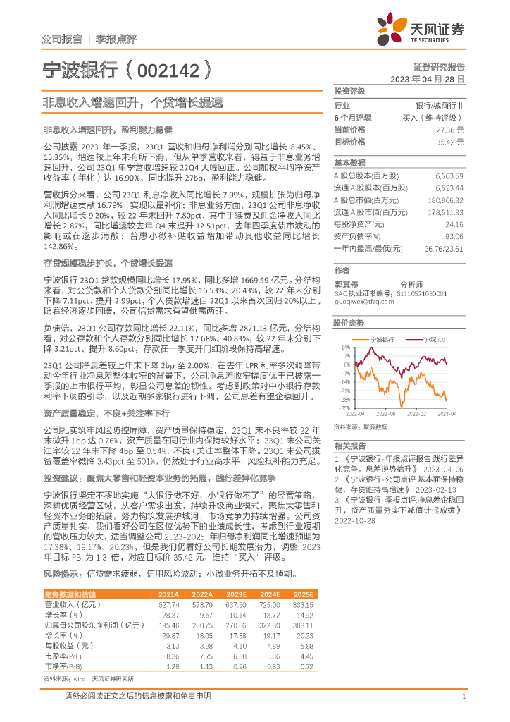 天风证券:宁波银行(002142)-非息收入增速回升,个贷增长提速.pdf