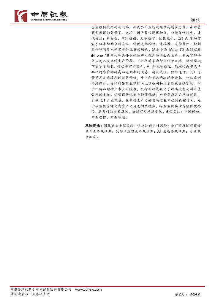 中原证券:通信行业月报:运营商大数据业务高速增长,AI手机渗透率逐步提升.pdf
