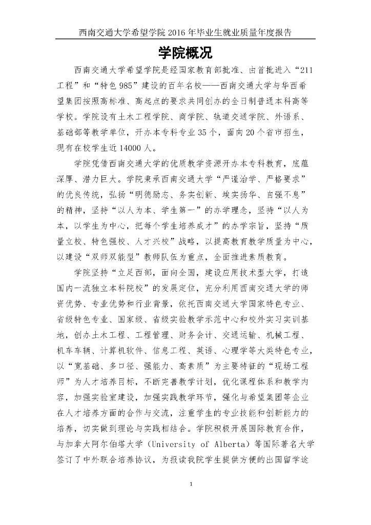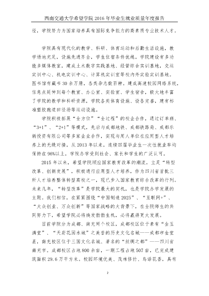 西南交通大学希望学院2016届毕业生就业质量报告.pdf