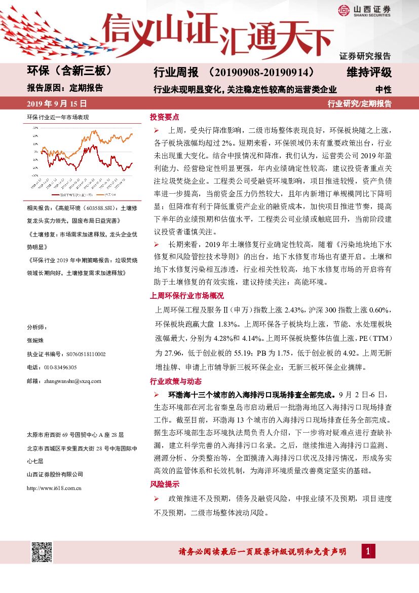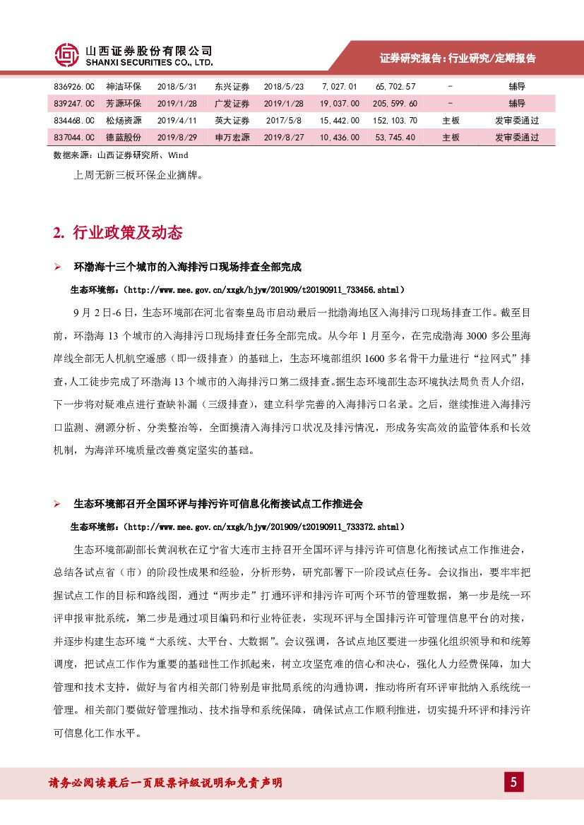 山西证券:环保(含新三板)行业周报:行业未现明显变化,关注稳定性较高的运营类企业.pdf