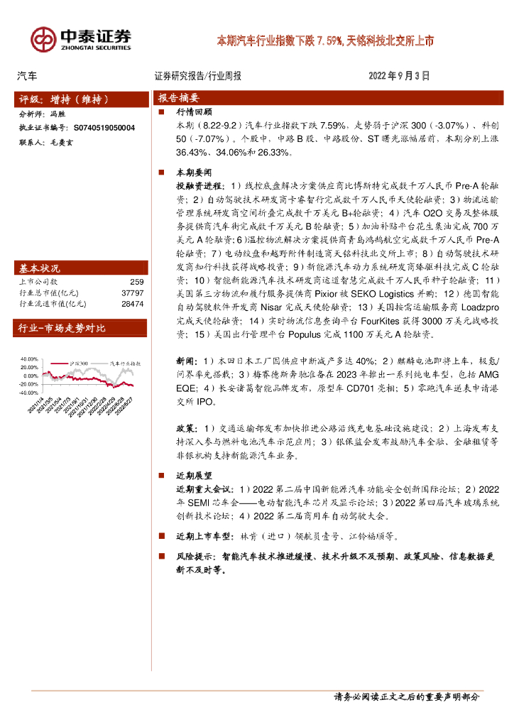 中泰证券:汽车行业周报:本期汽车行业指数下跌7.59%,天铭科技北交所上市.pdf