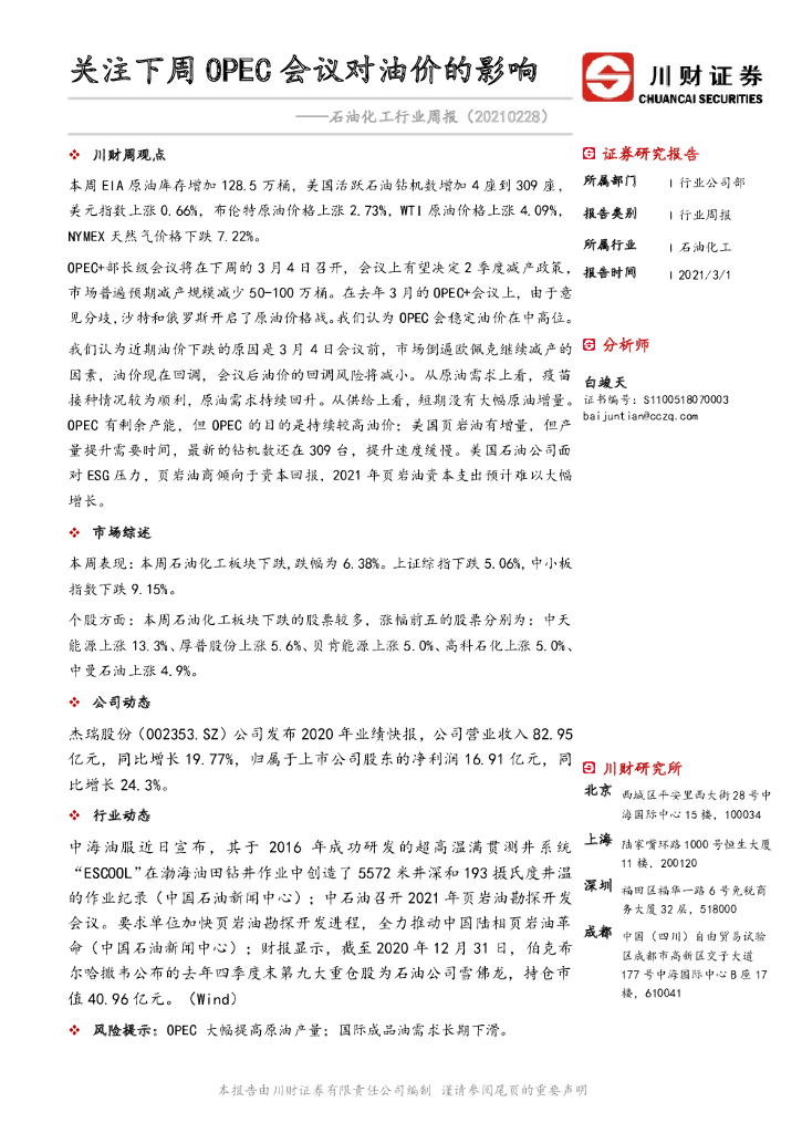 川财证券:石油化工行业周报:关注下周OPEC会议对油价的影响.pdf