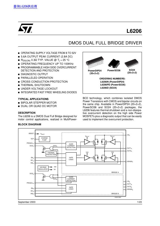 ST L6206DMOS DUAL FULL BRIDGE DRIVER 数据手册.pdf