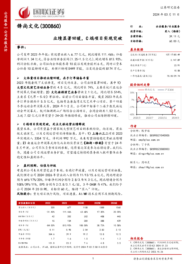 国联证券:锋尚文化(300860)-业绩显著回暖,C端项目实现突破.pdf