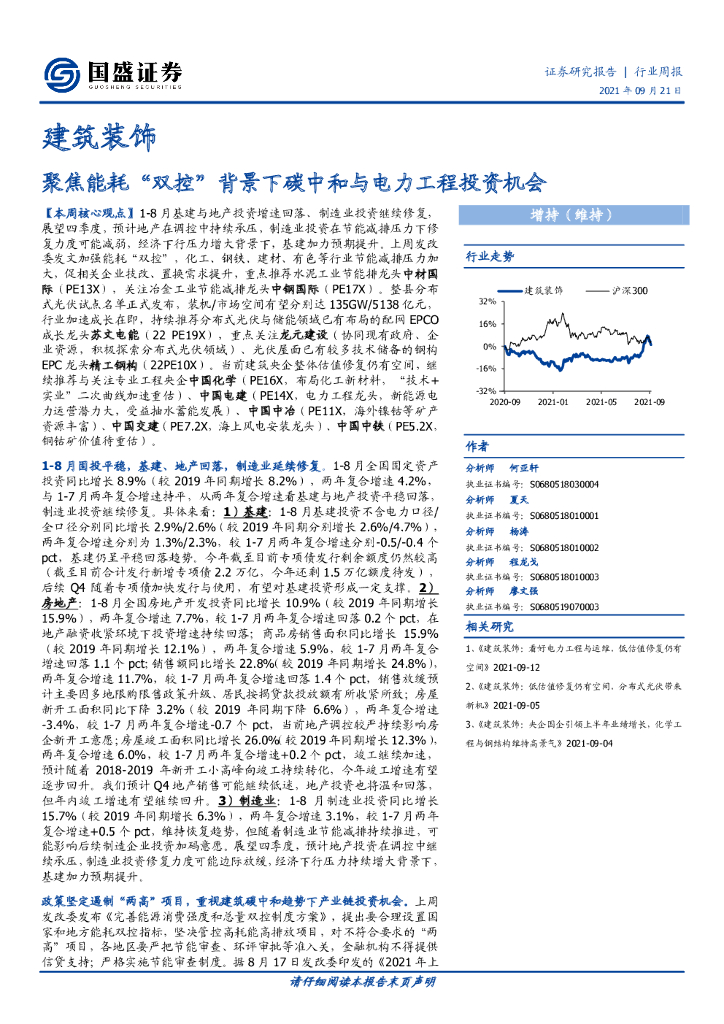 国盛证券:建筑装饰行业周报:聚焦能耗“双控”背景下碳中和与电力工程投资机会.pdf