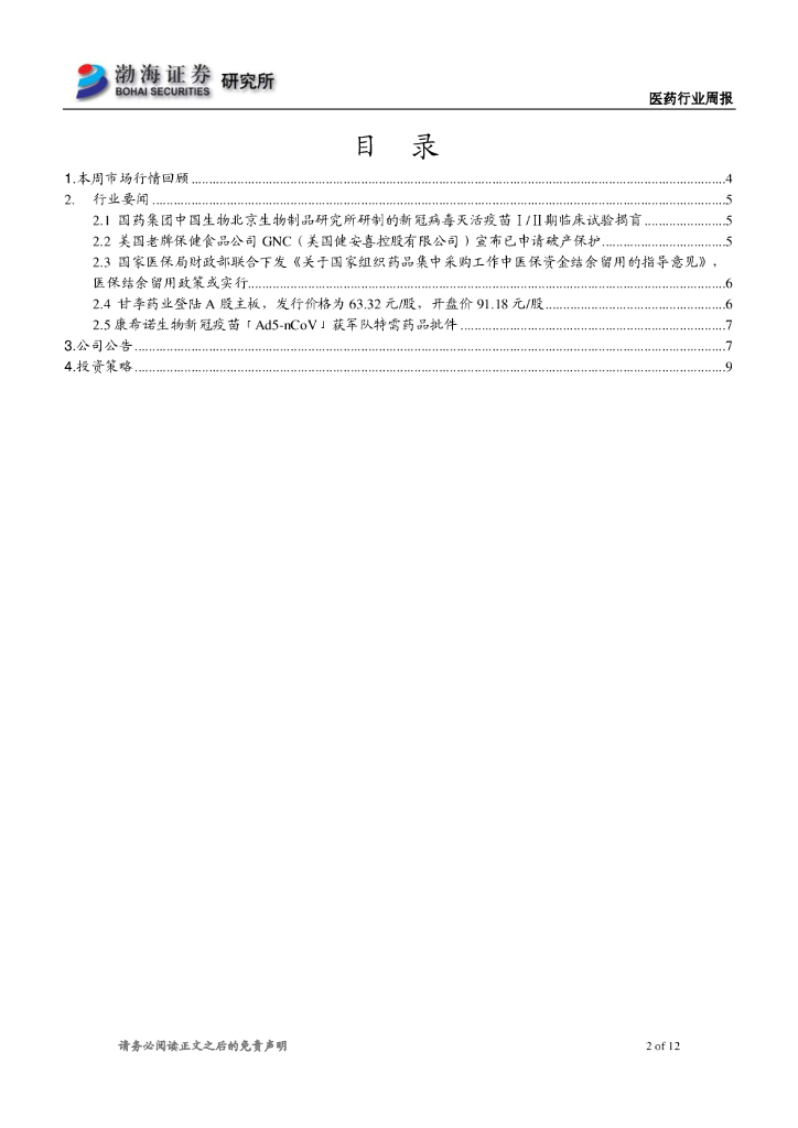 渤海证券:医药行业周报:疫情带来新的变化,关注疫苗和医疗新基建.pdf