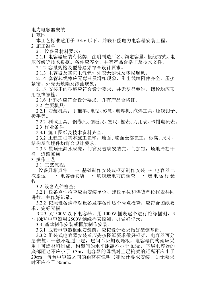 电力电容器安装技术交底.doc