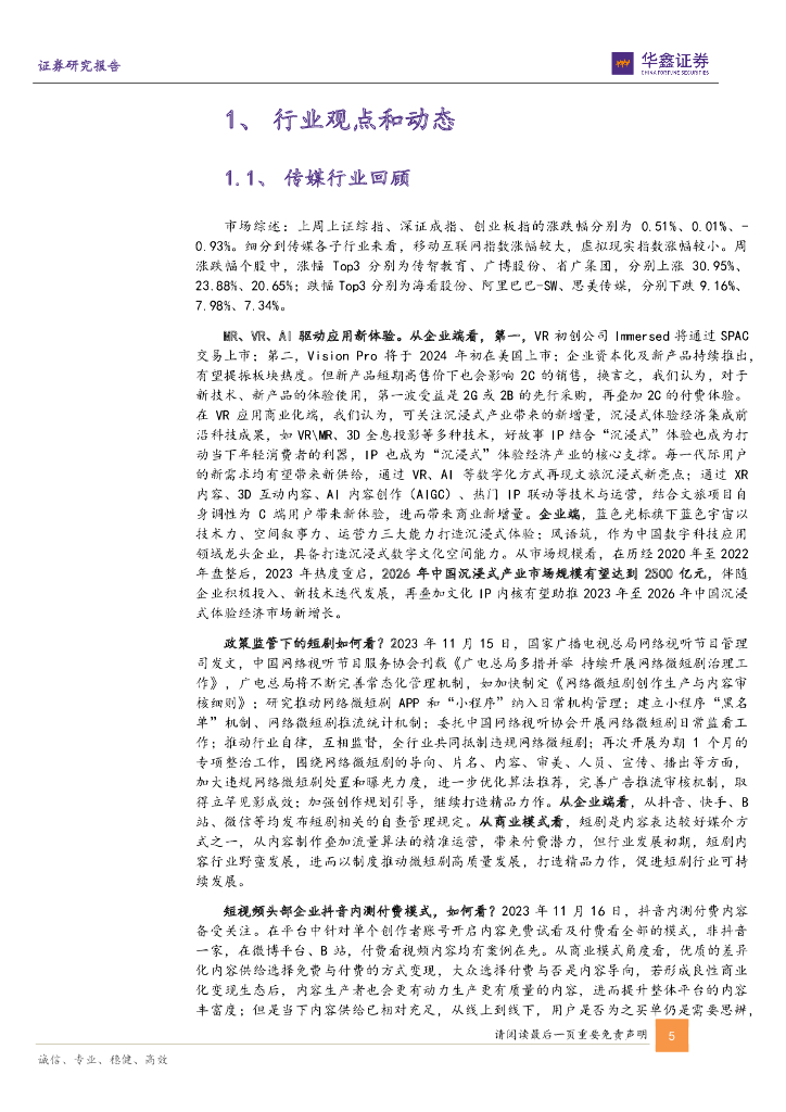 华鑫证券:传媒行业周报:MR VR AI驱动应用新体验 沉浸式产业可期.pdf