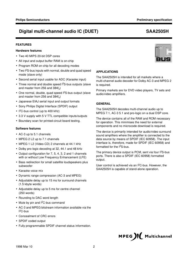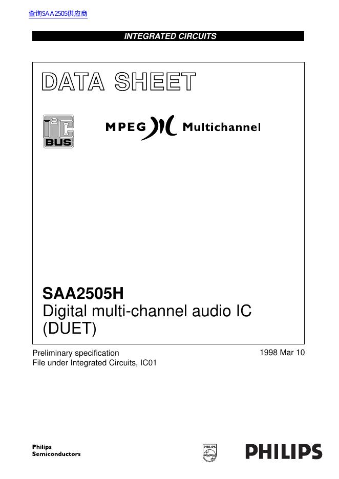 philips SAA2505H Digital multi-channel audio IC (DUET) 数据手册.pdf