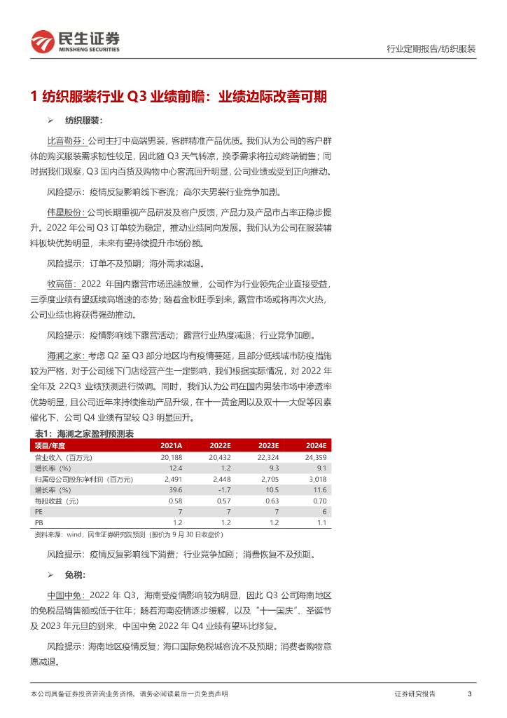 民生证券:纺服周观点:纺织服装行业22Q3业绩前瞻:疫情缓解寒露将至,纺服板块业绩边际好转可期.pdf