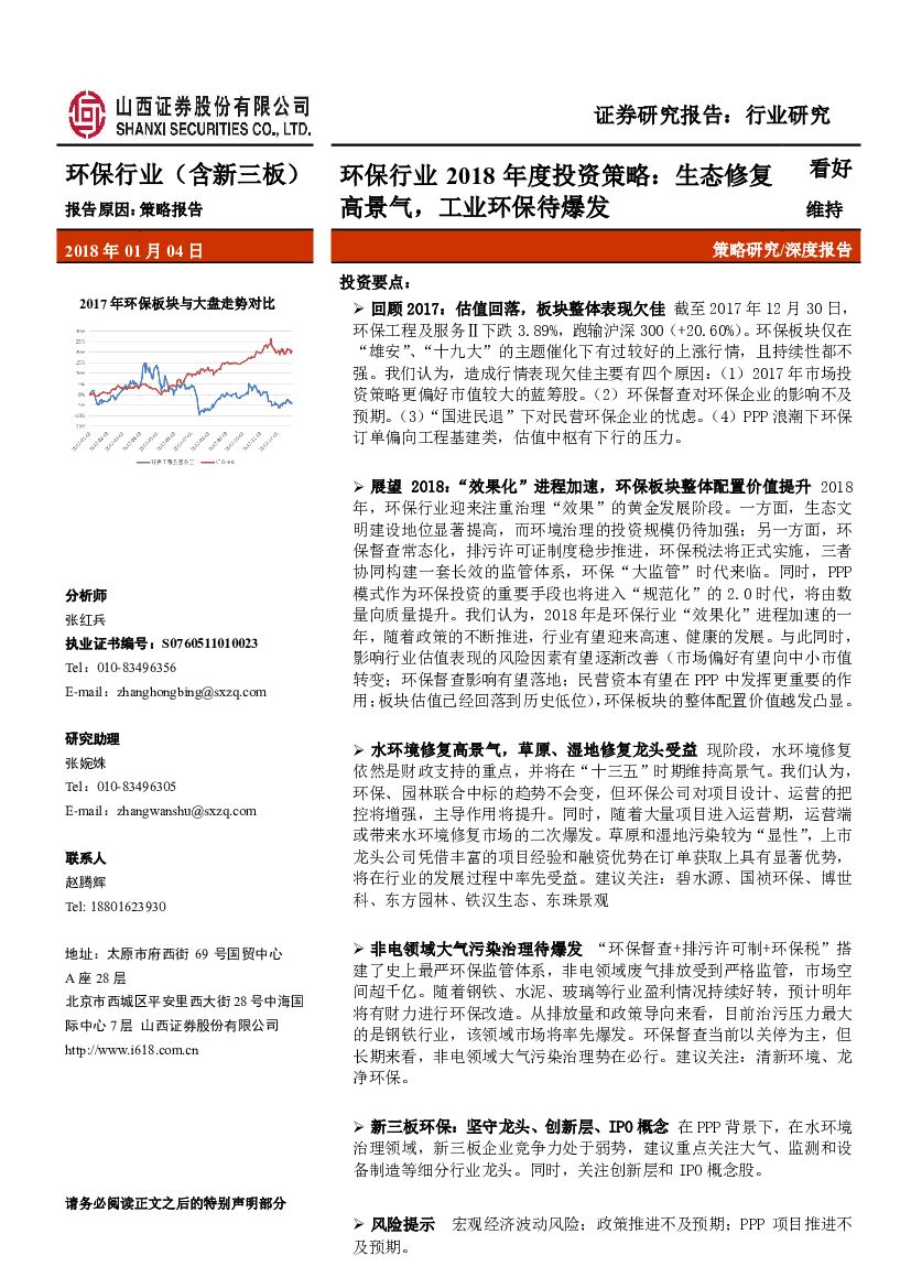 山西证券:环保行业2018年度投资策略:生态修复高景气,工业环保待爆发.pdf