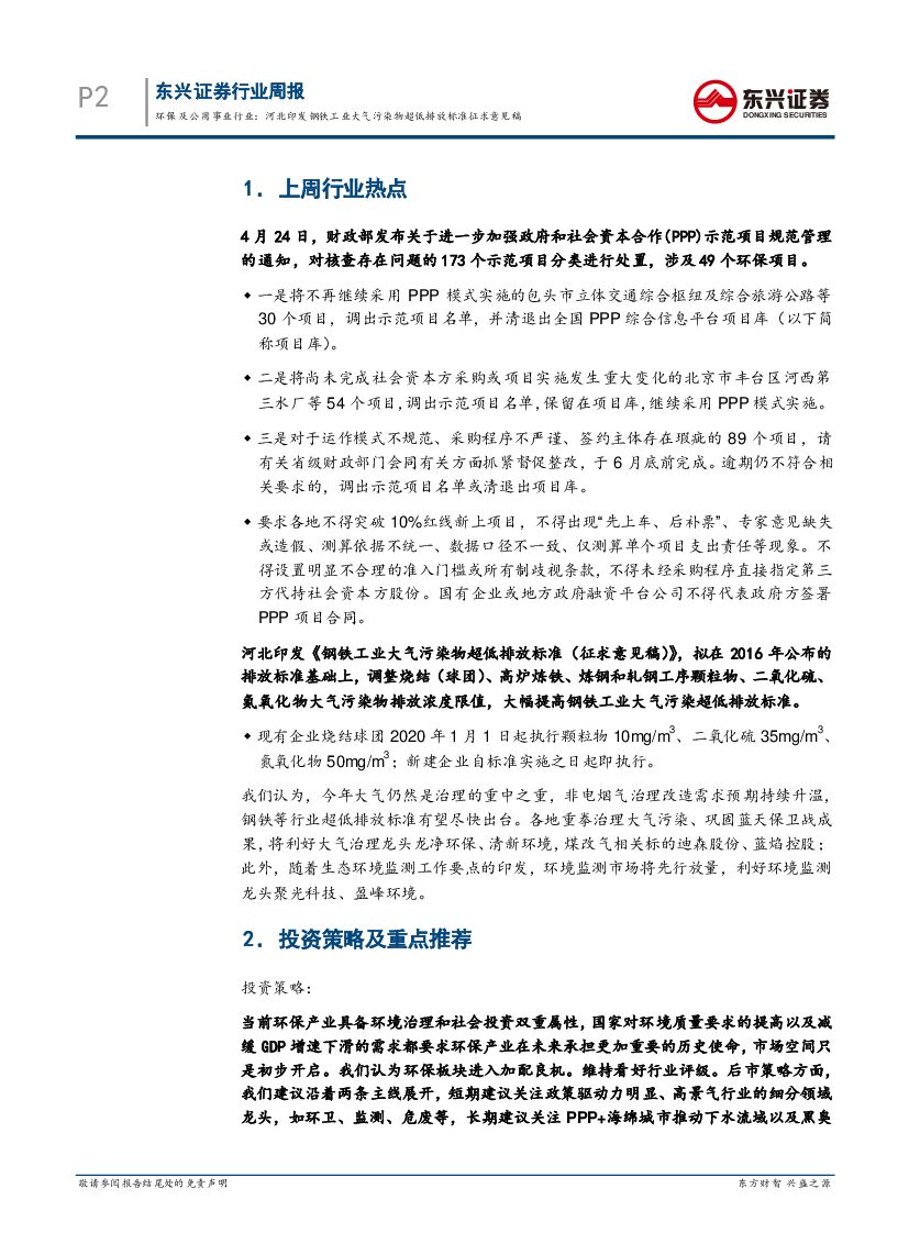东兴证券:环保及公用事业行业周报:河北印发钢铁工业大气污染物超低排放标准征求意见稿.pdf
