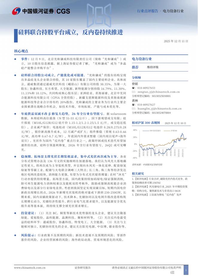 中国银河:电力设备行业:硅料联合持股平台成立,反内卷持续推进.pdf