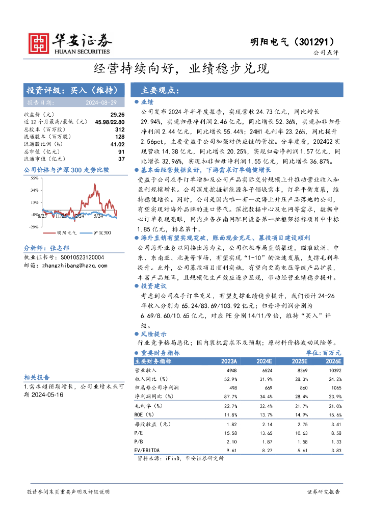 华安证券:明阳电气(301291)-经营持续向好,业绩稳步兑现.pdf
