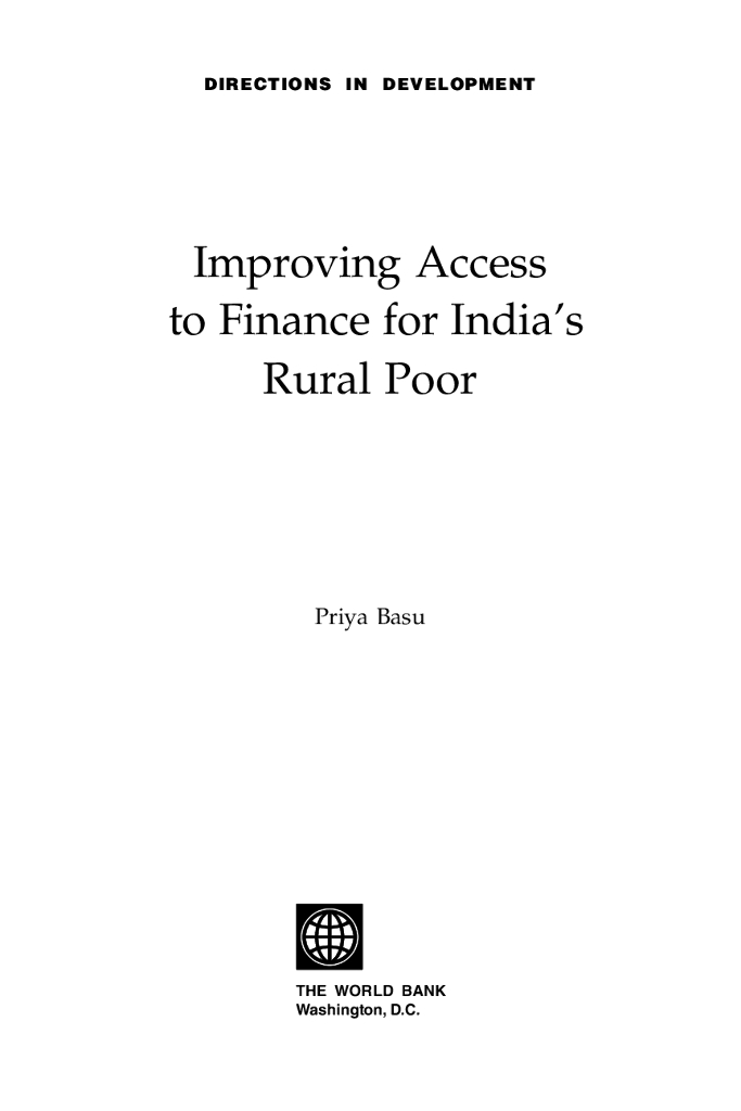 世界银行:发展方向报告-改善印度农村贫困人口的融资渠道(英文版).pdf