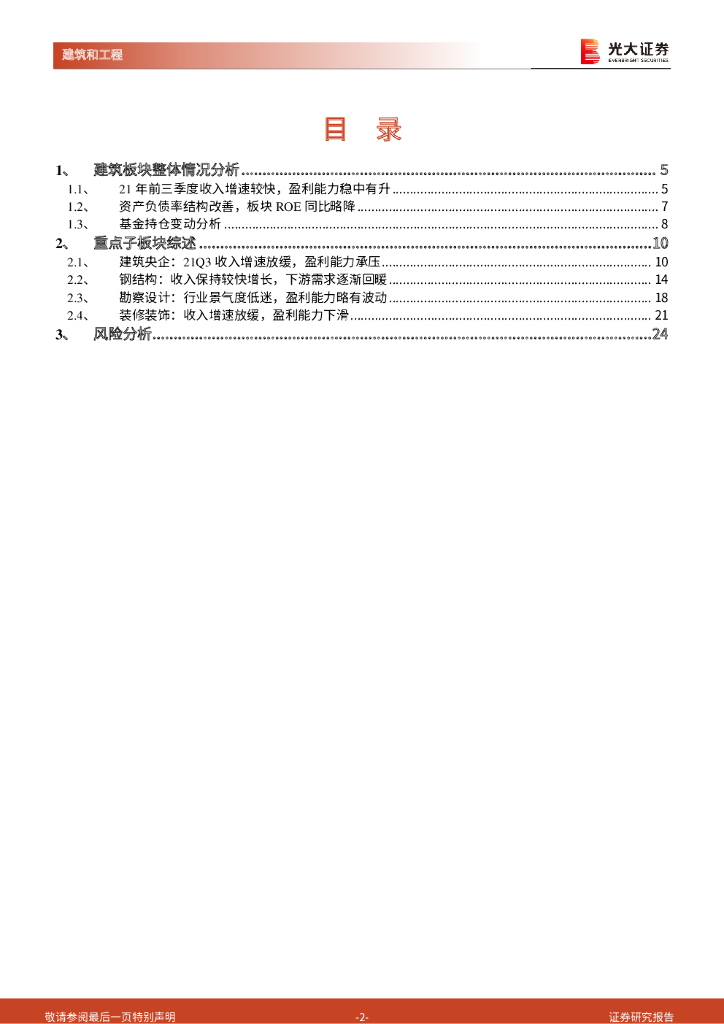 光大证券:建筑行业2021年三季报总结:建筑央企收入增速放缓,钢结构下游需求逐渐回暖.pdf