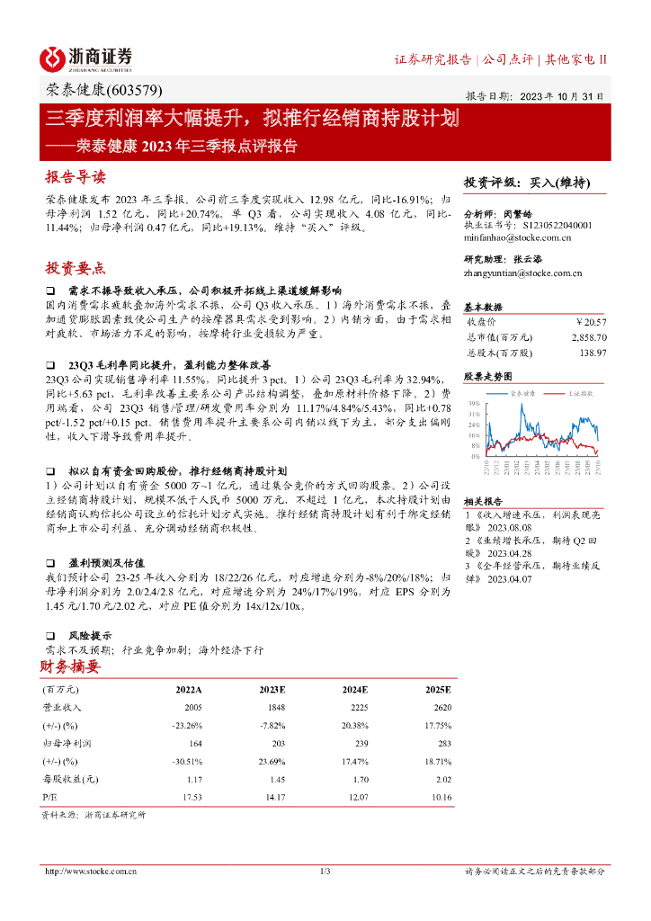 浙商证券:荣泰健康(603579)-三季度利润率大幅提升,拟推行经销商持股计划.pdf