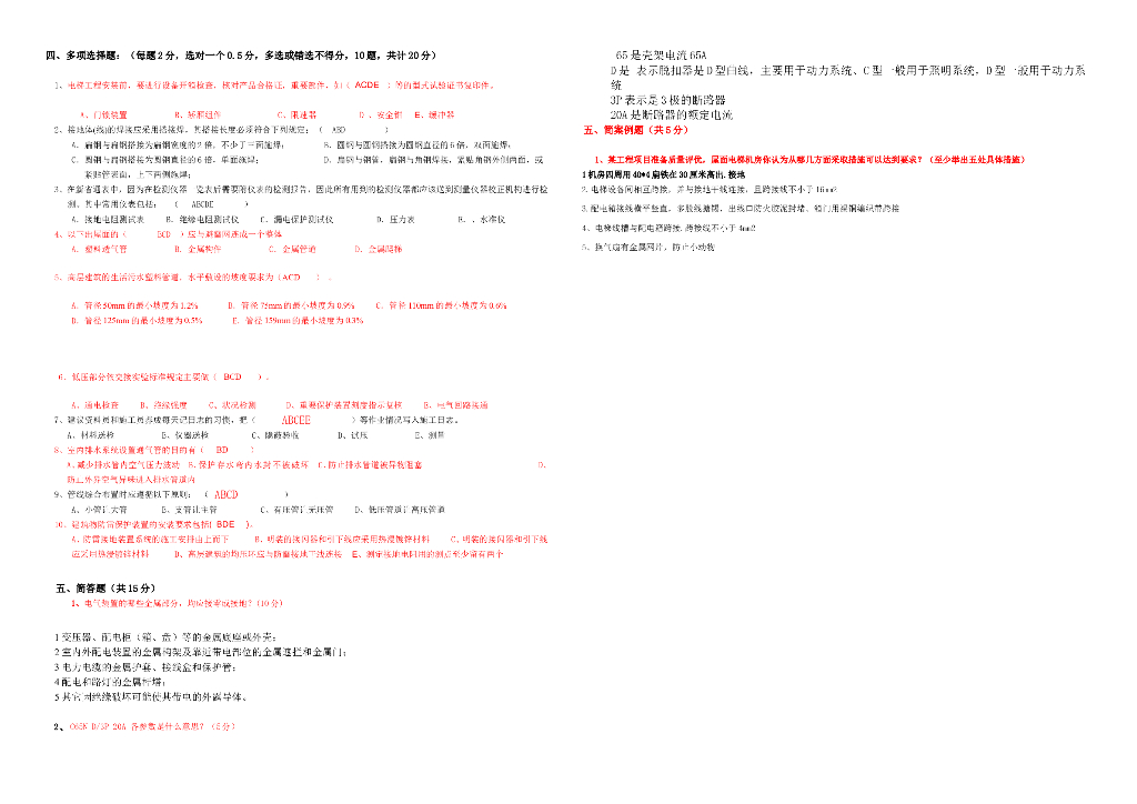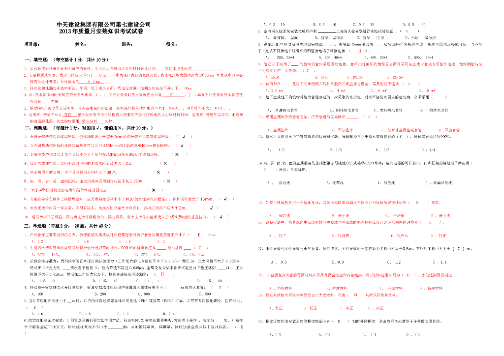[中天建设]质量月安装知识考试试卷及答案.doc