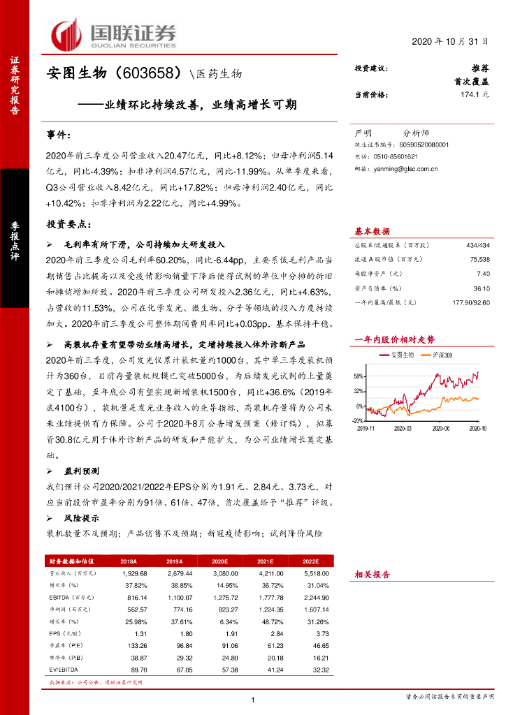 国联证券:安图生物(603658)-业绩环比持续改善,业绩高增长可期.pdf