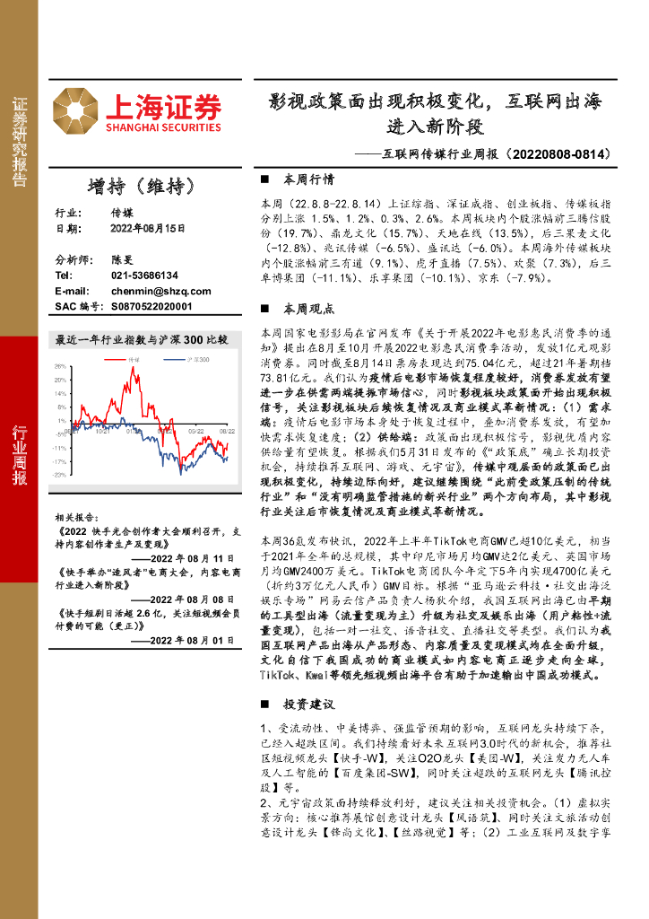 上海证券:互联网传媒行业周报:影视政策面出现积极变化,互联网出海进入新阶段.pdf