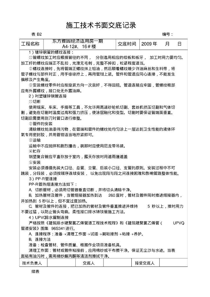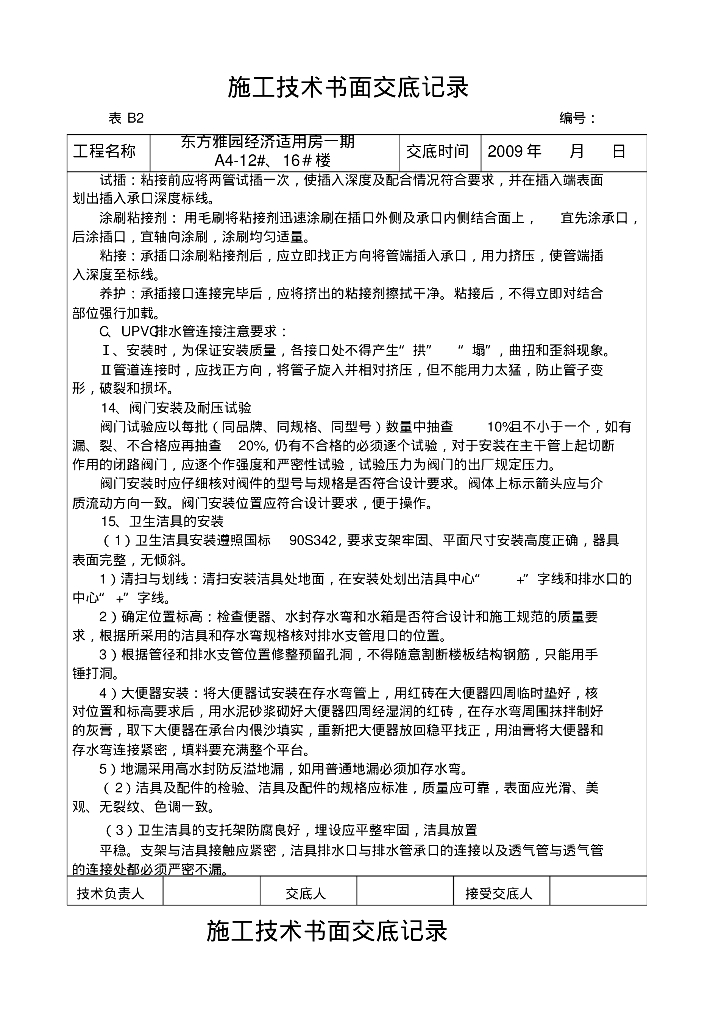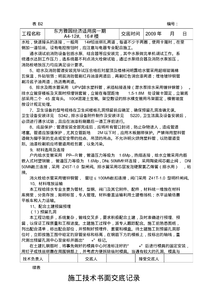 东方雅园经济适用房一期给排水书面技术交底记录.pdf