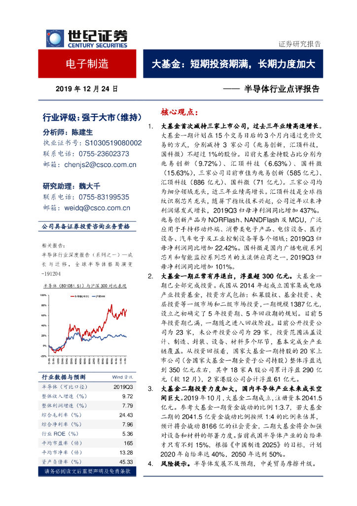 世纪证券:半导体行业点评报告:大基金:短期投资期满,长期力度加大.pdf
