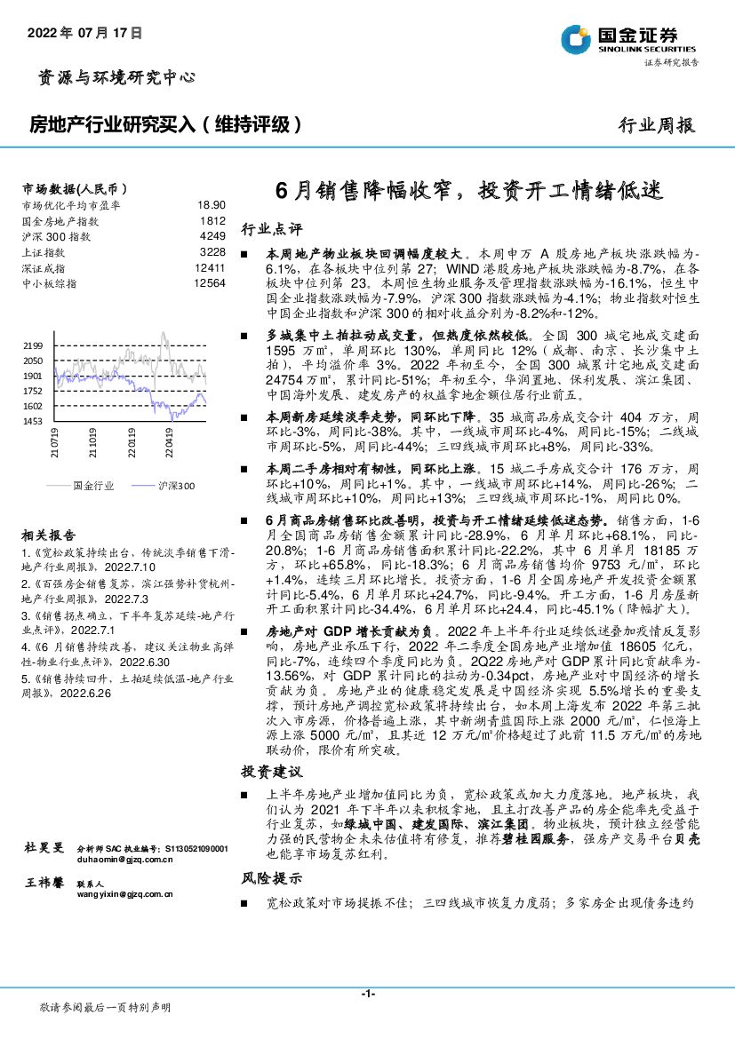 国金证券:房地产行业研究:6月销售降幅收窄,投资开工情绪低迷.pdf