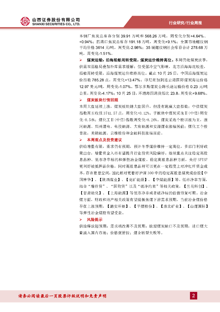 山西证券:煤炭行业周报:主要公司三季报业绩改善.pdf