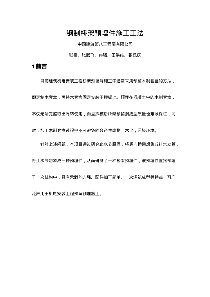 QHGF-2022047 钢制桥架预埋件工法.doc