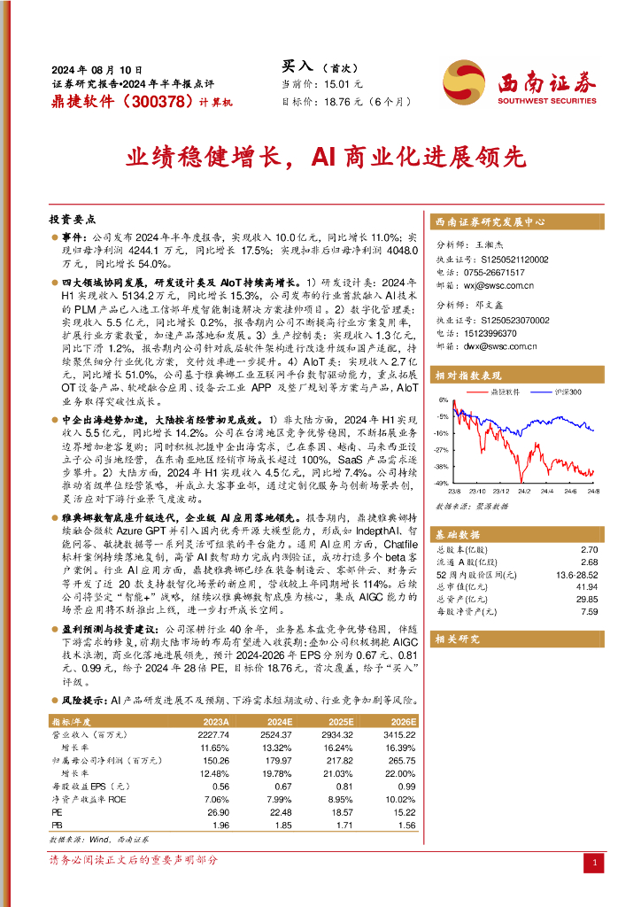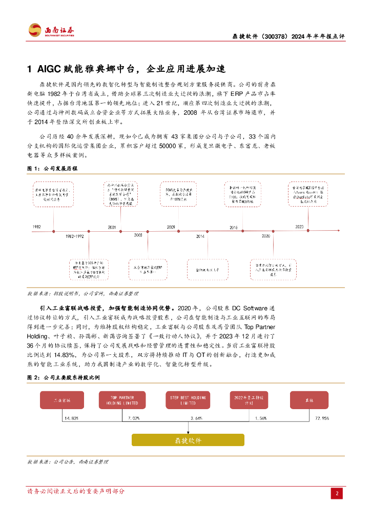 西南证券:鼎捷软件(300378)-2024年半年报点评:业绩稳健增长,AI商业化进展领先.pdf