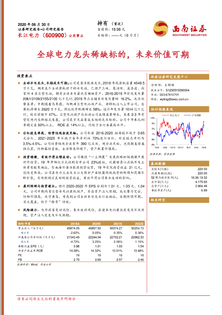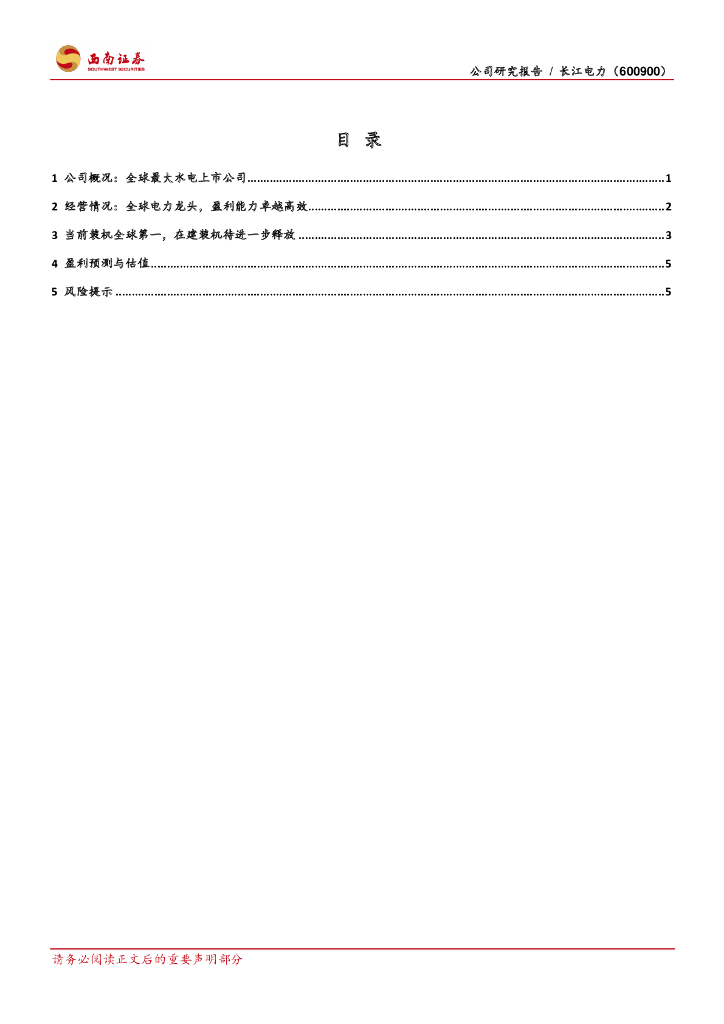 西南证券:长江电力(600900)-全球电力龙头稀缺标的,未来价值可期.pdf